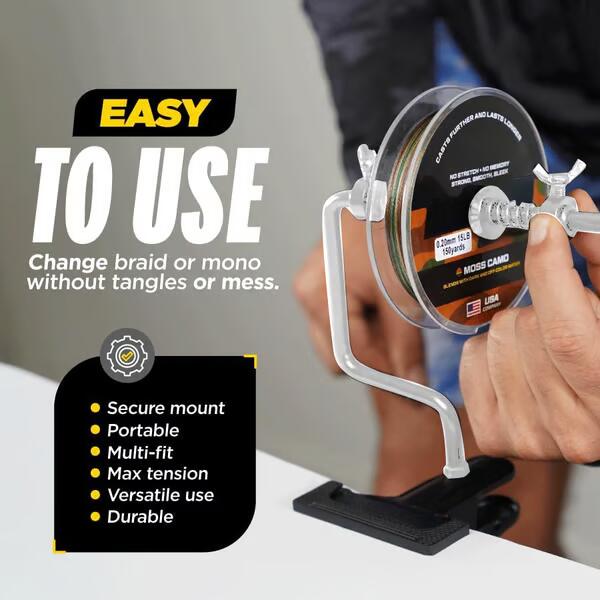 SET IT UP ANYWHERE, BOAT, GARAGE, OR SHORE SIDE - Mount it to your rod or clamp it to any flat surface. Featuring a sturdy, anti-slip design, this reel spooler is ready wherever you are. Whether you’re prepping for a trip or mid-session, you’ll spool like a pro on the go.